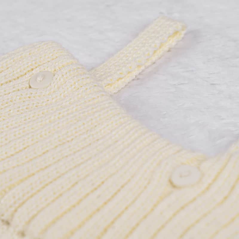 Jardineira Tricot Canelado com Botões Amarelo da Grão de Gente: R$ 168,29 no PIX ou R$ 197,99 em até 12x sem juros. Frete grátis acima de R$499. Entrega rastreada com garantia de 7 dias para trocas.