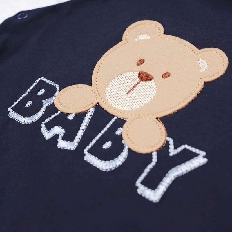 Jardineira Ursinho Baby Azul Marinho da Grão de Gente: R$ 73,09 no PIX ou R$ 85,99 em até 12x sem juros. Frete grátis acima de R$499. Entrega rastreada com garantia de 7 dias para trocas.