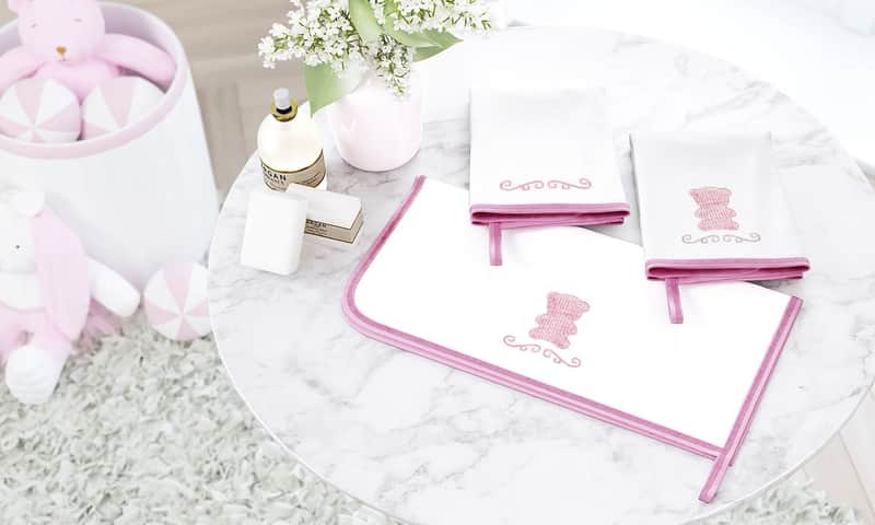 Produtos em algodão antialérgico e materiais certificados, seguindo normas de segurança do Inmetro.