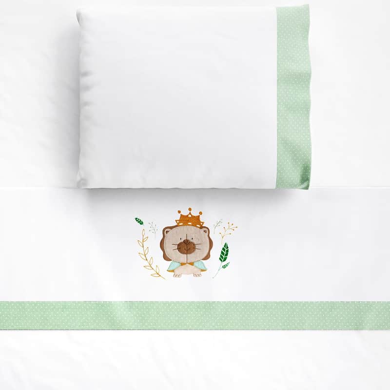 Jogo de Lençol Berço Bordado Leão Verde 3 peças