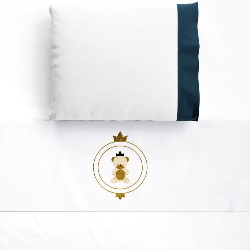 Jogo de Lençol Berço Bordado Urso Teddy Realeza Azul Marinho 3 peças da Grão de Gente: R$ 89,24 no PIX ou R$ 104,99 em até 12x sem juros. Frete grátis acima de R$499. Entrega rastreada com garantia de 7 dias para trocas.