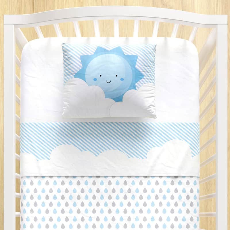 Jogo de Lençol Berço Nuvem de Algodão Azul 3 peças