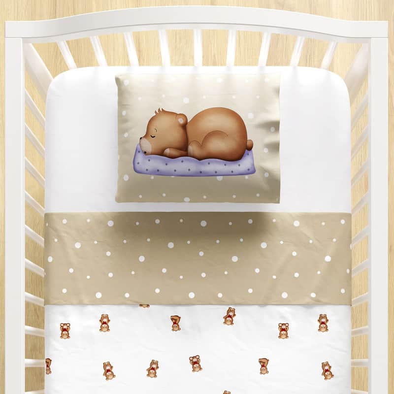 Jogo de Lençol Berço Ursinho Vintage Poá 3 peças