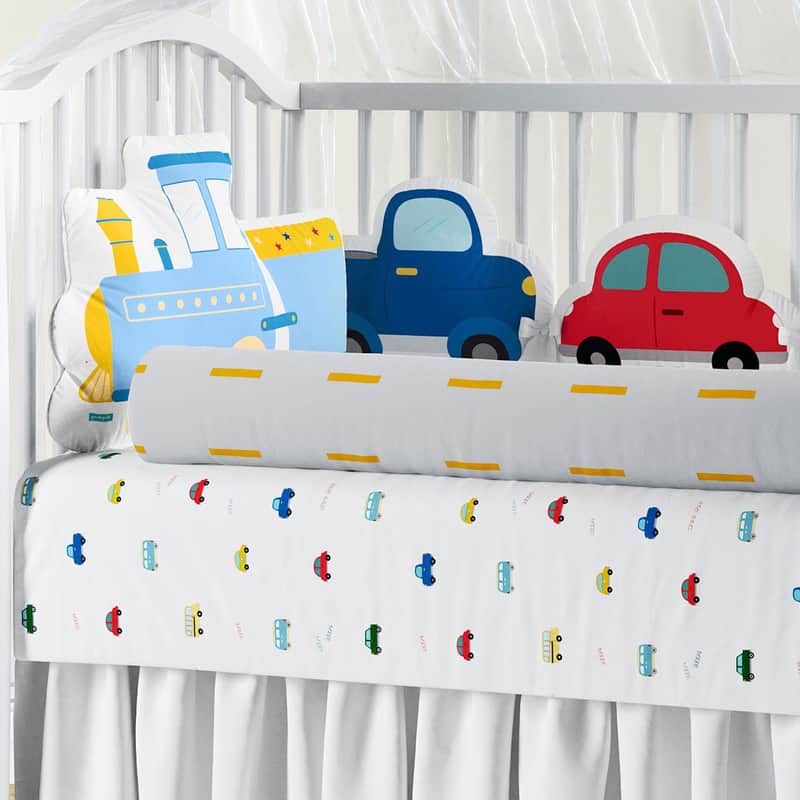 • Almofadas protetoras estampadas com carrinhos: Azul, Amarelo e Vermelho
