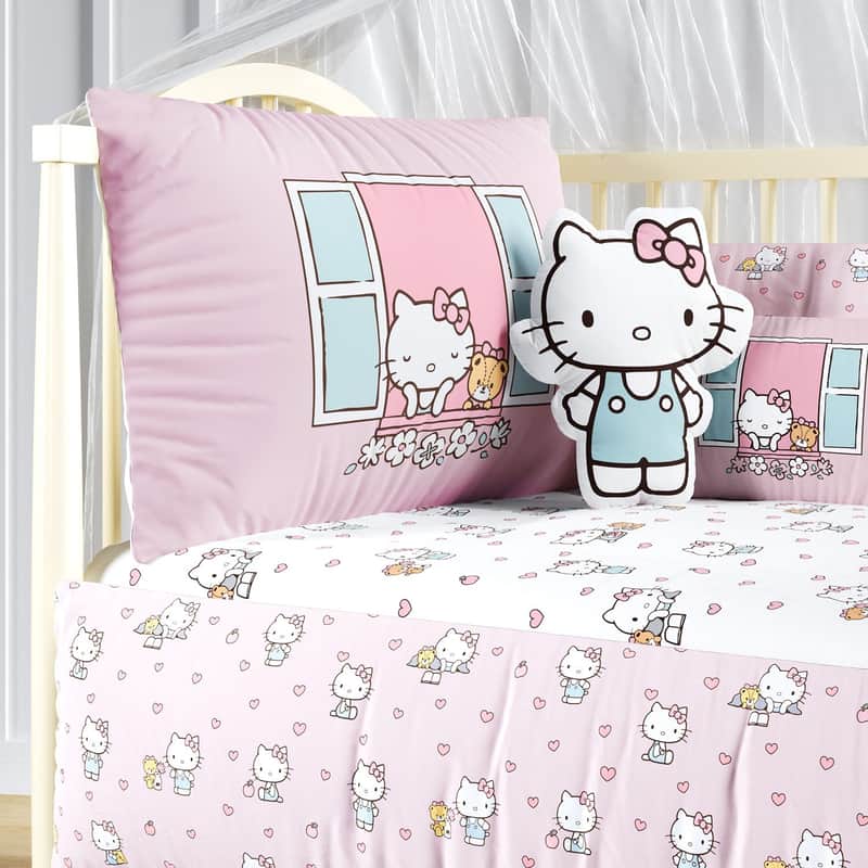 Kit Berço Hello Kitty Rosa da Grão de Gente: R$ 169,99 no PIX ou R$ 199,99 em até 12x sem juros. Frete grátis acima de R$499. Entrega rastreada com garantia de 7 dias para trocas.