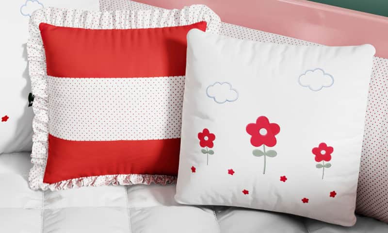 Produtos em algodão antialérgico e materiais certificados, seguindo normas de segurança do Inmetro.