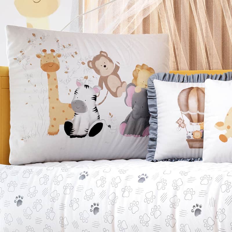Kit Berço Safári Aquarela da Grão de Gente: R$ 199,74 no PIX ou R$ 234,99 em até 12x sem juros. Frete grátis acima de R$499. Entrega rastreada com garantia de 7 dias para trocas.