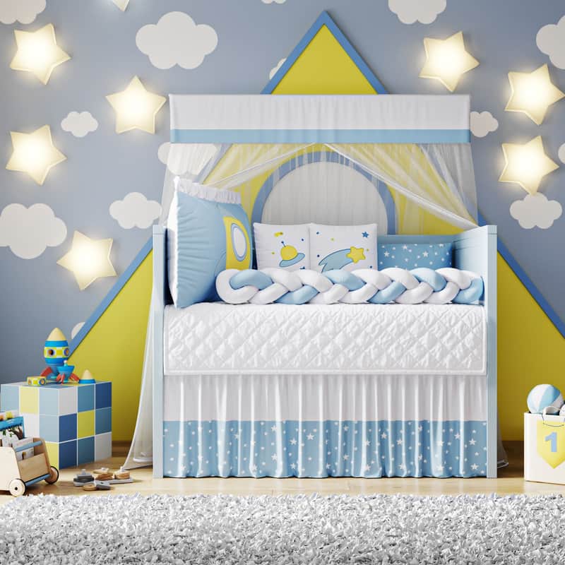 Kit Berço Trança Foguete Azul da Grão de Gente: R$ 203,99 no PIX ou R$ 239,99 em até 12x sem juros. Frete grátis acima de R$499. Entrega rastreada com garantia de 7 dias para trocas.