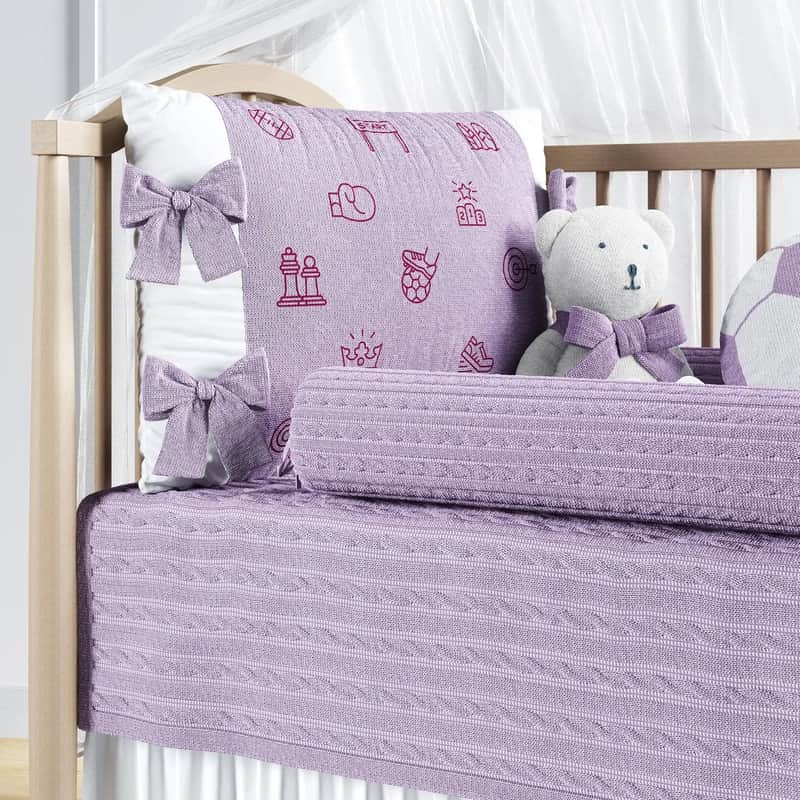 Kit Berço Tricot Esportes Lilás da Grão de Gente: R$ 111,34 no PIX ou R$ 130,99 em até 12x sem juros. Frete grátis acima de R$499. Entrega rastreada com garantia de 7 dias para trocas.
