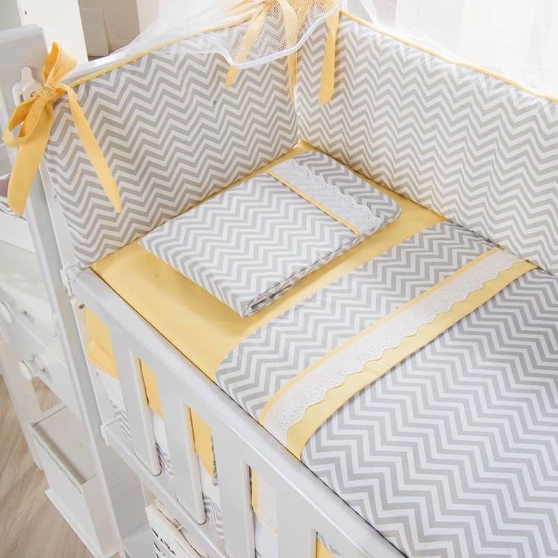 Kit Mini Berço Baby Chevron Amarelo