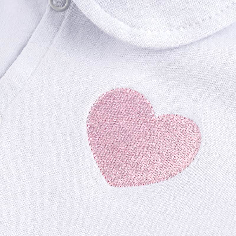 Macacão Longo Bordado Coração Branco da Grão de Gente: R$ 79,04 no PIX ou R$ 92,99 em até 12x sem juros. Frete grátis acima de R$499. Entrega rastreada com garantia de 7 dias para trocas.