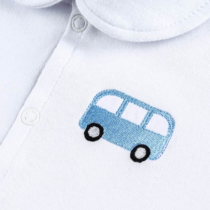 Macacão Longo Bordado Ônibus Branco da Grão de Gente: R$ 79,04 no PIX ou R$ 92,99 em até 12x sem juros. Frete grátis acima de R$499. Entrega rastreada com garantia de 7 dias para trocas.