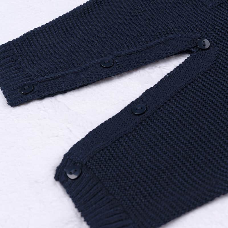 Macacão Tricot Bolsinhos Azul Marinho da Grão de Gente: R$ 128,34 no PIX ou R$ 150,99 em até 12x sem juros. Frete grátis acima de R$499. Entrega rastreada com garantia de 7 dias para trocas.