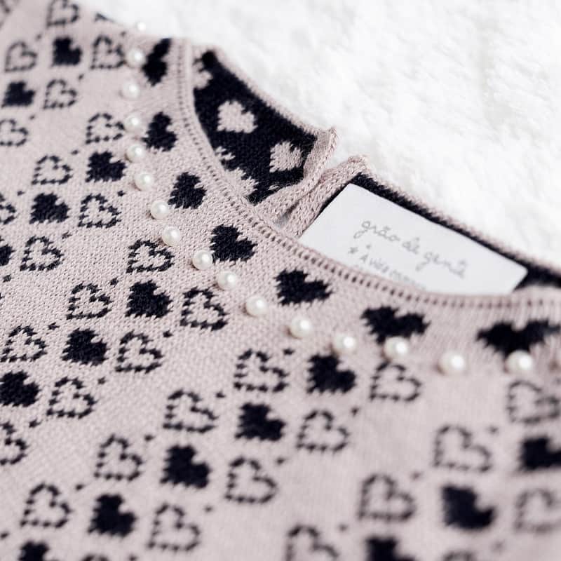 Macacão Tricot Mademoiselle Coração Nude e Azul Marinho da Grão de Gente: R$ 170,84 no PIX ou R$ 200,99 em até 12x sem juros. Frete grátis acima de R$499. Entrega rastreada com garantia de 7 dias para trocas.