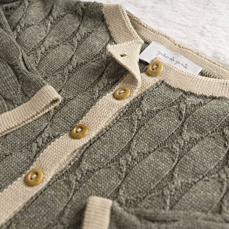 Macacão Tricot Trança Aram Verde Musgo da Grão de Gente: R$ 238,84 no PIX ou R$ 280,99 em até 12x sem juros. Frete grátis acima de R$499. Entrega rastreada com garantia de 7 dias para trocas.