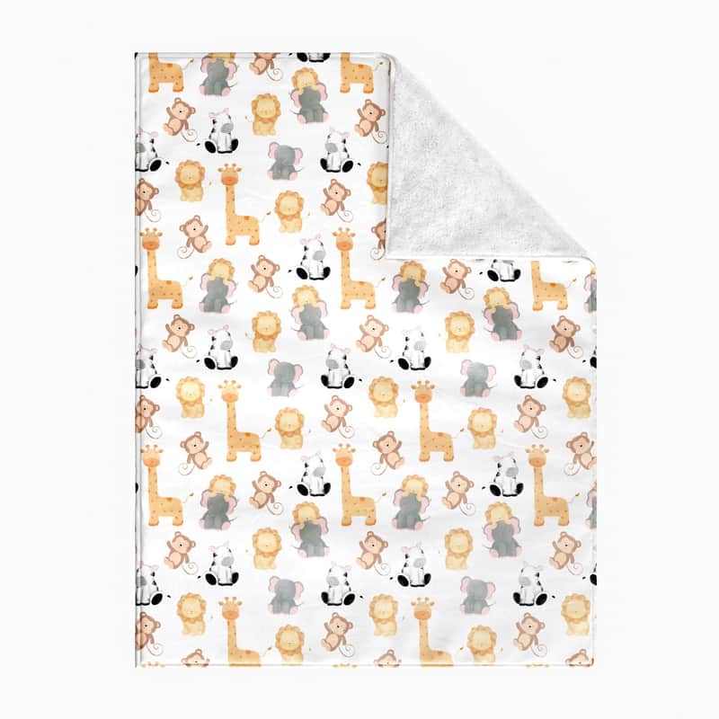 Divertido e colorido, a Manta Dupla Face com Soft Safári Aquarela é o item que vai completar o seu enxoval dos sonhos! Aconchegante, com forro macio de tecido soft para embalar seu bebê em um soninho confortável e tranquilo.