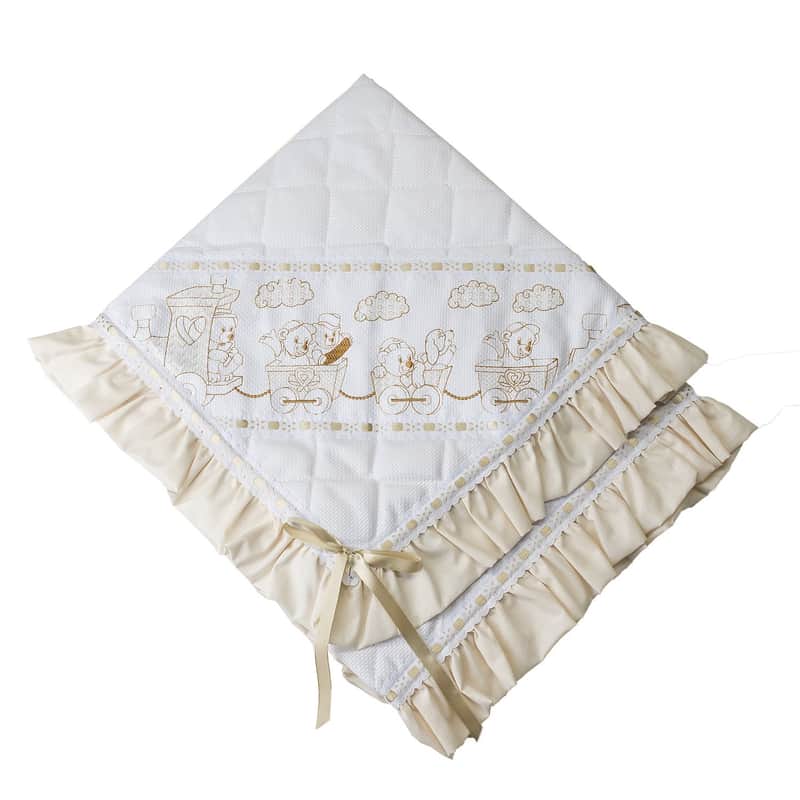 Manta Matelada Ursinhos no Trenzinho Bege 75cm da Bordados Alexandra: R$ 105,39 no PIX ou R$ 123,99 em até 12x sem juros. Frete grátis acima de R$499. Entrega rastreada com garantia de 7 dias para trocas.