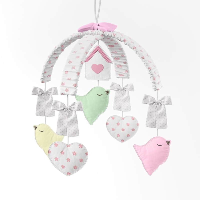 Móbile Floral Patchwork Rosa da Grão de Gente: R$ 71,39 no PIX ou R$ 83,99 em até 12x sem juros. Frete grátis acima de R$499. Entrega rastreada com garantia de 7 dias para trocas.