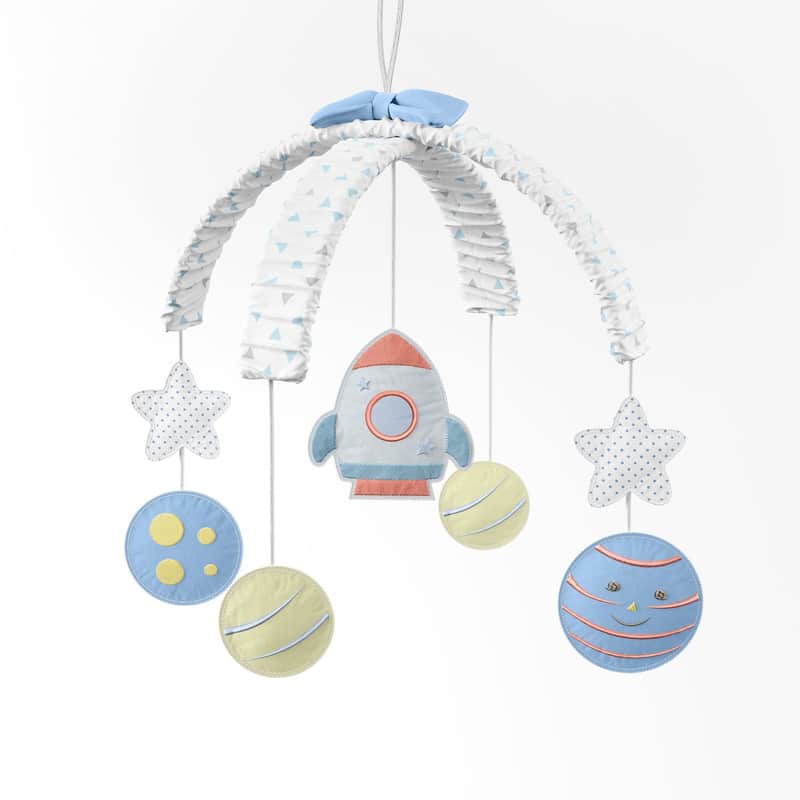 Móbile Foguete e Planetas Patchwork Azul da Grão de Gente: R$ 71,39 no PIX ou R$ 83,99 em até 12x sem juros. Frete grátis acima de R$499. Entrega rastreada com garantia de 7 dias para trocas.