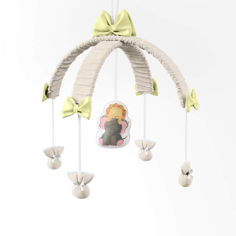 Confeccionado em tecido de toque suave, o acessório traz a originalidade dos bichinhos da savana que vão ajudar a relaxar e entreter o recém-nascido.