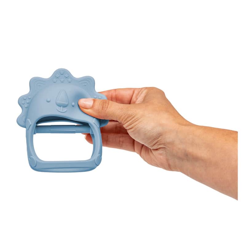 Com formato anatômico, o acessório é feito de silicone macio e texturizado, proporcionando um efeito calmante nas gengivas.
