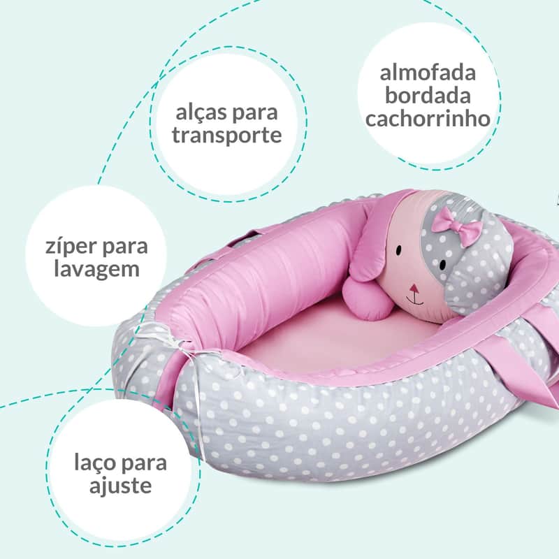 Ninho para Bebê Redutor de Berço Amiguinha Cachorrinha Rosa 75cm da Grão de Gente: R$ 178,49 no PIX ou R$ 209,99 em até 12x sem juros. Frete grátis acima de R$499. Entrega rastreada com garantia de 7 dias para trocas.