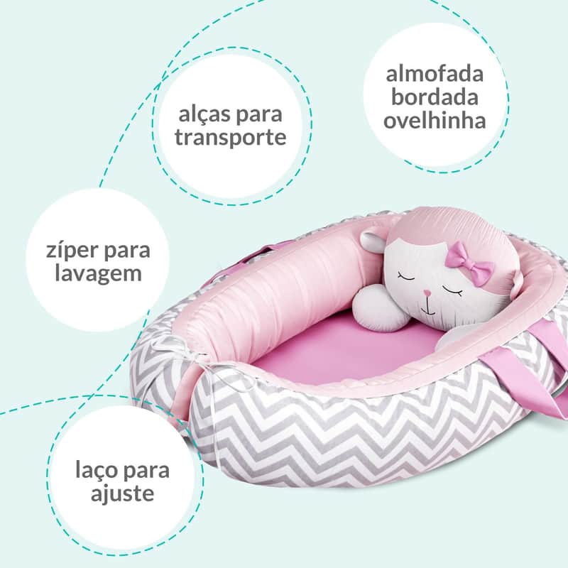 Ninho para Bebê Redutor de Berço Amiguinha Ovelhinha Rosa 75cm da Grão de Gente: R$ 73,09 no PIX ou R$ 85,99 em até 12x sem juros. Frete grátis acima de R$499. Entrega rastreada com garantia de 7 dias para trocas.