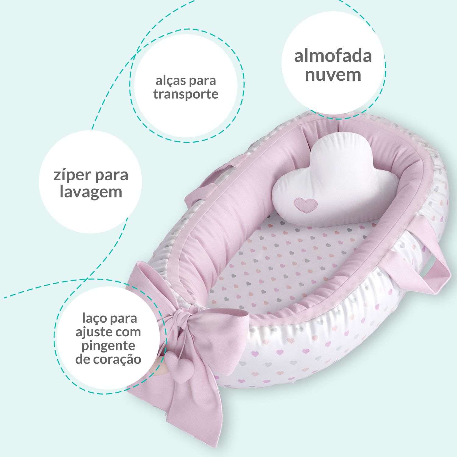 O Ninho Bebê Redutor Berço Corações é um produto exclusivo da Grão de Gente, principal marca de enxoval e decoração para quarto de bebê da América Latina.