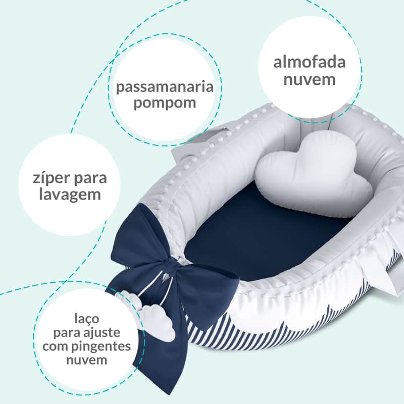 Ninho para Bebê Redutor de Berço Nuvem de Algodão Azul Marinho 80cm da Grão de Gente: R$ 191,24 no PIX ou R$ 224,99 em até 12x sem juros. Frete grátis acima de R$499. Entrega rastreada com garantia de 7 dias para trocas.