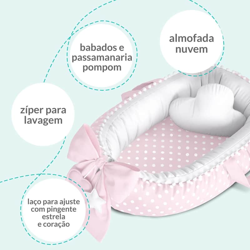 Ninho para Bebê Redutor de Berço Poá Rosa/Branco 80cm