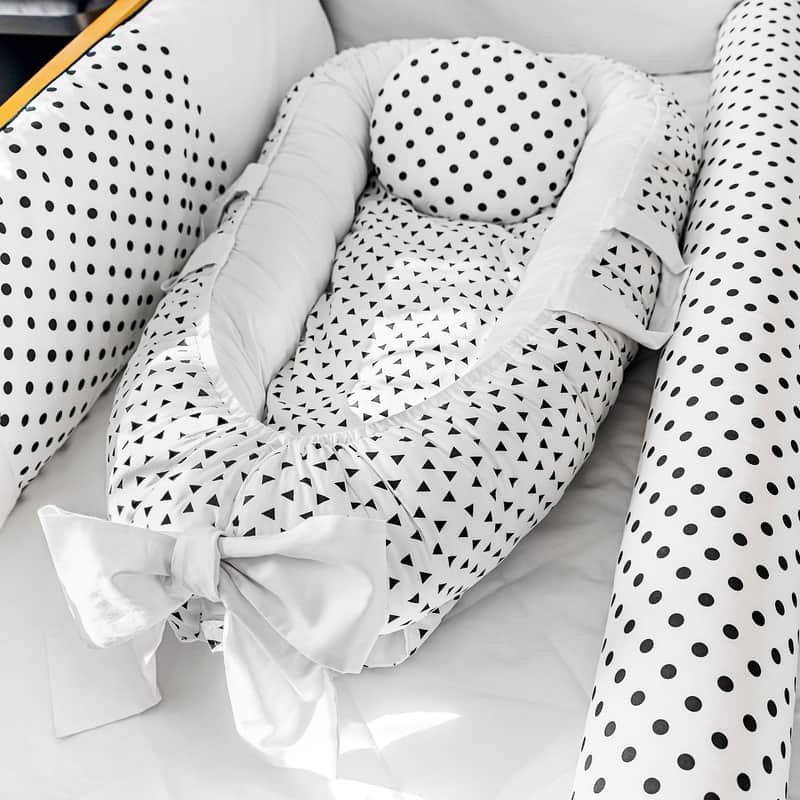 Ninho para Bebê Redutor de Berço Triângulos e Poá Preto e Branco 80cm da Grão de Gente: R$ 178,49 no PIX ou R$ 209,99 em até 12x sem juros. Frete grátis acima de R$499. Entrega rastreada com garantia de 7 dias para trocas.