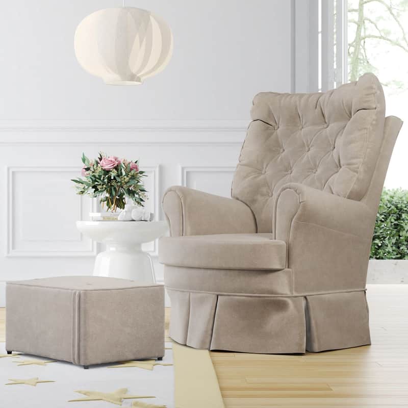 Poltrona Amamentação Balanço e Giratória com Puff Luxo Camurça