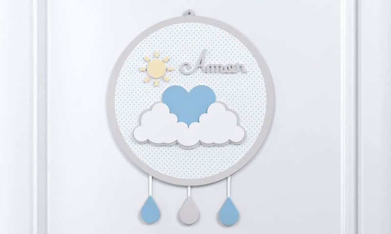 Porta Maternidade MDF Chuva de Amor da Grão de Gente: R$ 125,79 no PIX ou R$ 147,99 em até 12x sem juros. Frete grátis acima de R$499. Entrega rastreada com garantia de 7 dias para trocas.