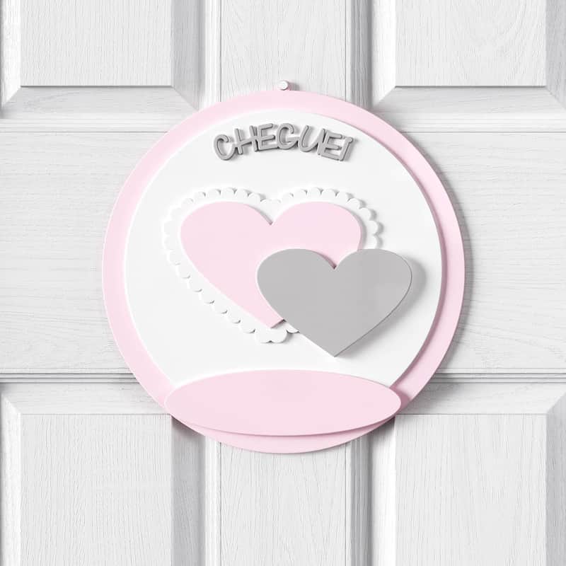 Porta Maternidade Personalizado Coração Rosa e Cinza da Grão de Gente: R$ 128,34 no PIX ou R$ 150,99 em até 12x sem juros. Frete grátis acima de R$499. Entrega rastreada com garantia de 7 dias para trocas.
