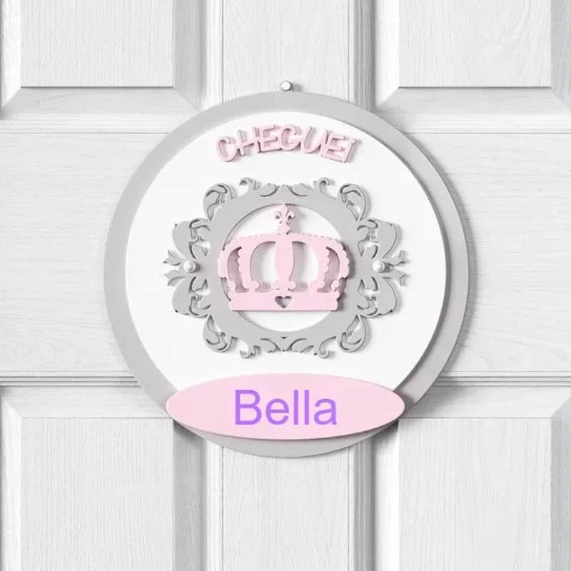 Porta Maternidade Personalizado Coroa Arabesco Rosa - Bella