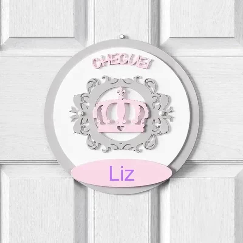 Porta Maternidade Personalizado Coroa Arabesco Rosa - Liz
