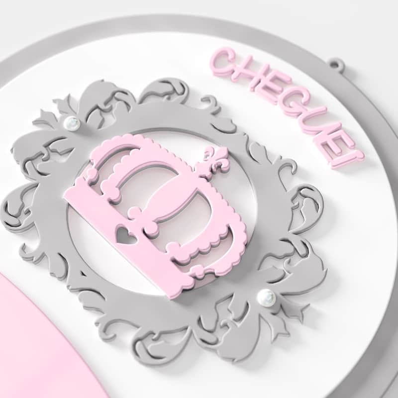 Porta Maternidade Personalizado Coroa Arabesco Rosa