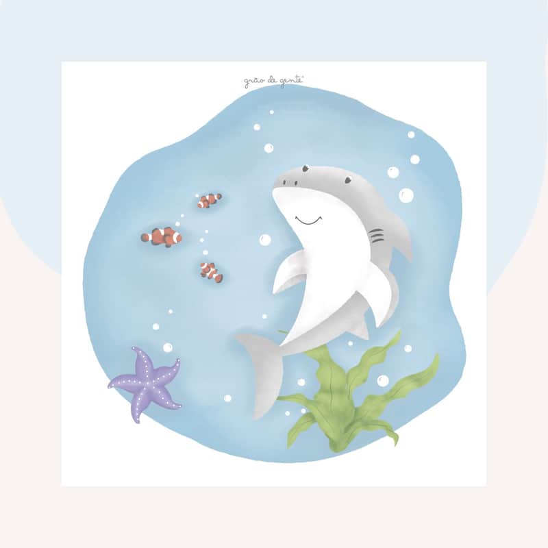 Pôster Adesivo de Parede Pequeno Tubarão da Grão de Gente: R$ 10,19 no PIX ou R$ 11,99 em até 12x sem juros. Frete grátis acima de R$499. Entrega rastreada com garantia de 7 dias para trocas.