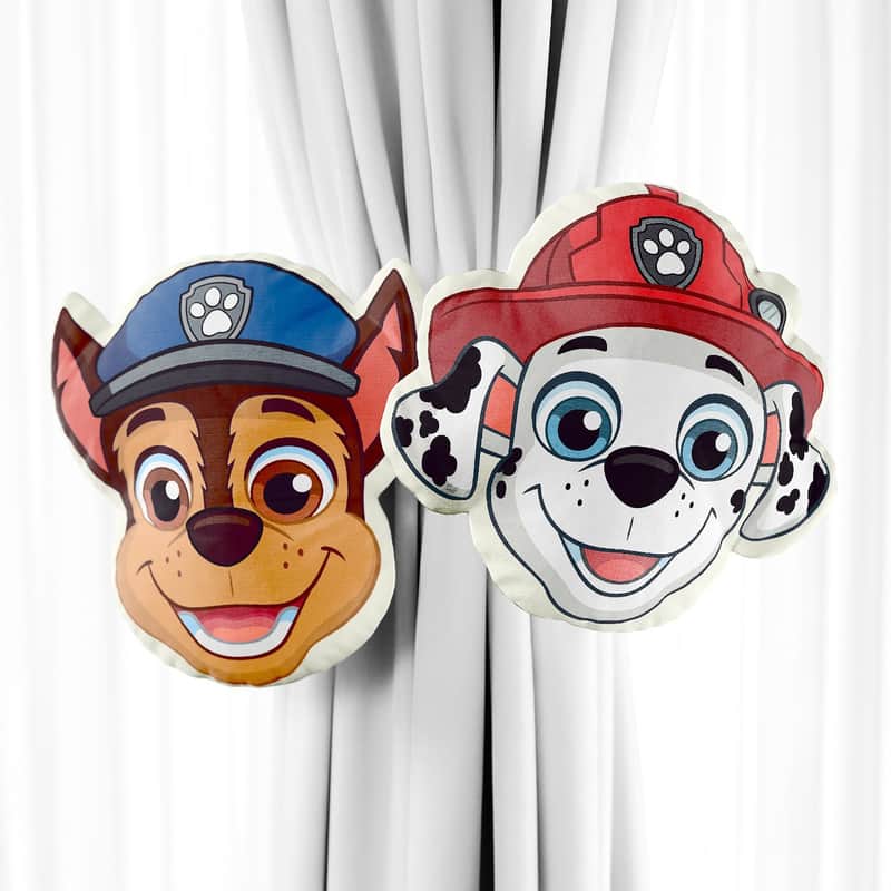 Confeccionado em tecido de toque suave, o acessório tem estampas inspiradas nos brincalhões patrulheiros Chase e Marshall e permite o ajuste da cortina da melhor maneira.