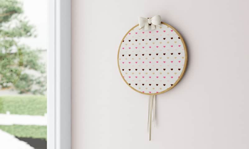 Uma novidade encantadora e cheia de charme! O Bastidor Estampado Alice Bege vai conquistar seu coração com uma moderna estampa de coração, fitinhas de cetim e um lacinho super fofo, que vai deixar tudo ainda mais elegante.