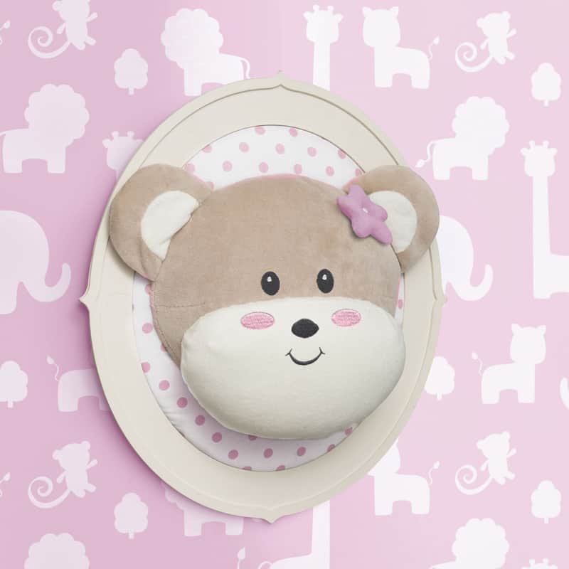 Quadro Cabeça de Macaquinha Amiguinhas Safári Rosa 42cm