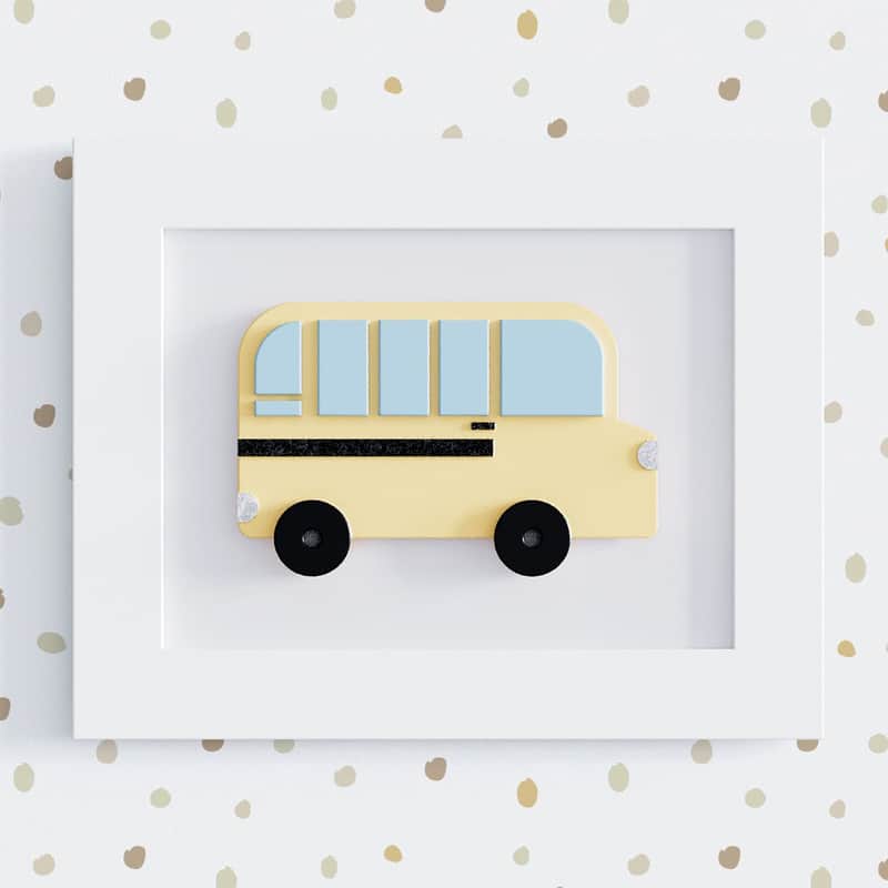 Decorar a parede com quadros é uma excelente ideia, por isso, o Quadro Ônibus Escolar Amarelo não pode ficar de fora da decoração do quarto de bebê. Confeccionado em madeira 100% MDF, esse belo quadro conta com uma graciosa aplicação de ônibus. Confira os outros quadros da coleção Amiguinhos Carrinhos Coloridos e se apaixone!