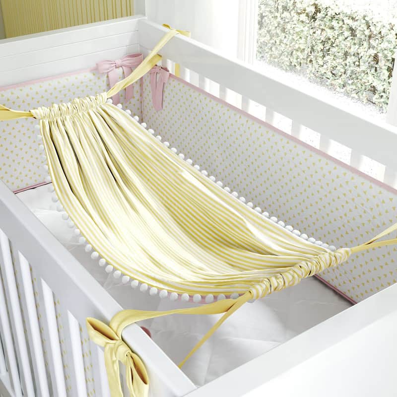 Rede para Berço Dupla Face Listrada Amarela/Rosa da Grão de Gente: R$ 84,14 no PIX ou R$ 98,99 em até 12x sem juros. Frete grátis acima de R$499. Entrega rastreada com garantia de 7 dias para trocas.