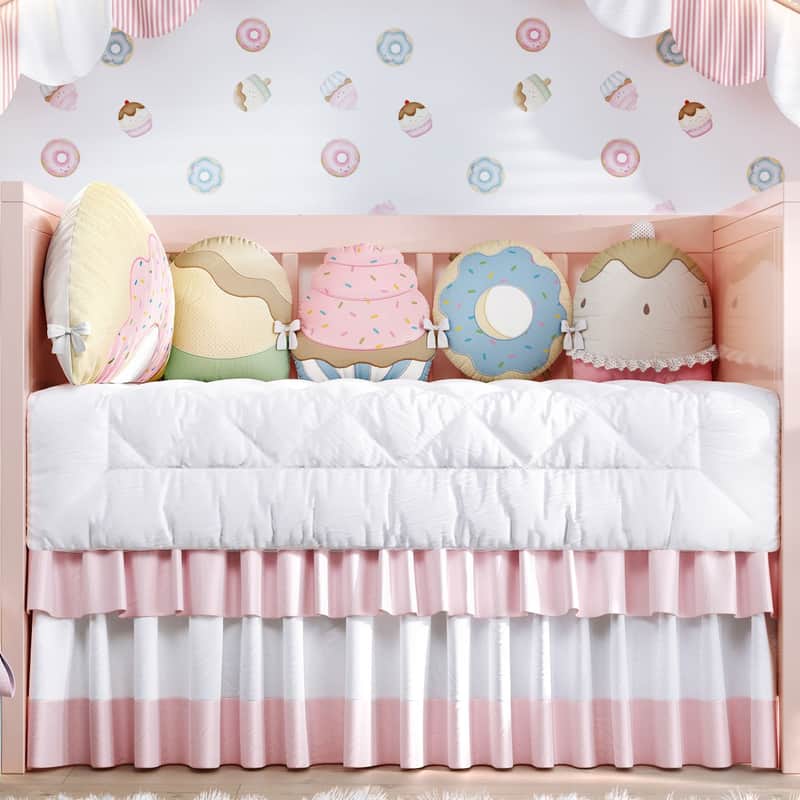 Saia de Berço Babado Duplo Rosa e Branco da Grão de Gente: R$ 67,99 no PIX ou R$ 79,99 em até 12x sem juros. Frete grátis acima de R$499. Entrega rastreada com garantia de 7 dias para trocas.