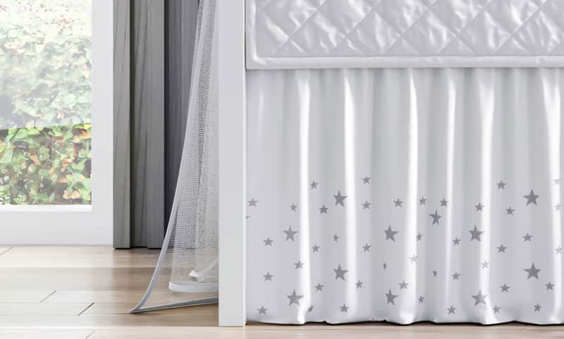 Saia de Berço Barra Estrelinhas Branco e Azul da Grão de Gente: R$ 67,99 no PIX ou R$ 79,99 em até 12x sem juros. Frete grátis acima de R$499. Entrega rastreada com garantia de 7 dias para trocas.