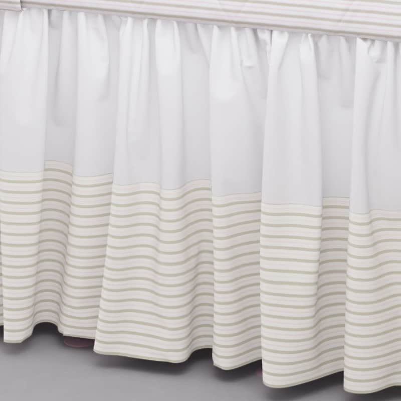 Saia de Berço Barra Listrada Bege e Rosa da Grão de Gente: R$ 93,49 no PIX ou R$ 109,99 em até 12x sem juros. Frete grátis acima de R$499. Entrega rastreada com garantia de 7 dias para trocas.