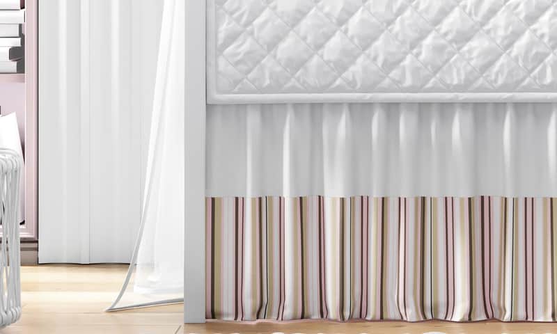 Saia de Berço Barra Listrada Rosa e Bege da Grão de Gente: R$ 67,99 no PIX ou R$ 79,99 em até 12x sem juros. Frete grátis acima de R$499. Entrega rastreada com garantia de 7 dias para trocas.