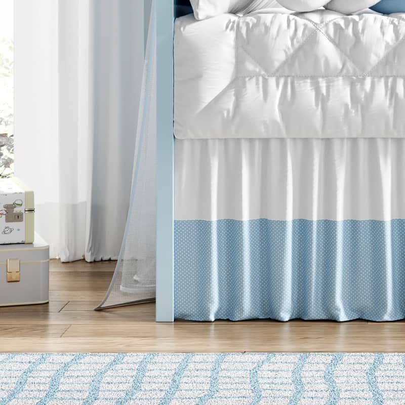 Saia de Berço Barra Poá Azul da Grão de Gente: R$ 67,99 no PIX ou R$ 79,99 em até 12x sem juros. Frete grátis acima de R$499. Entrega rastreada com garantia de 7 dias para trocas.