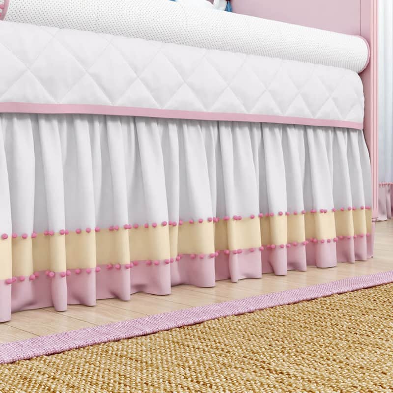 Saia de Berço Barra Pompons Rosa e Amarelo
