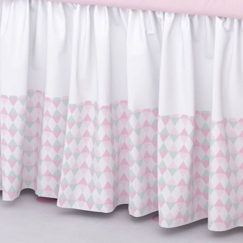 Saia de Berço Barra Triângulos Rosa e Verde